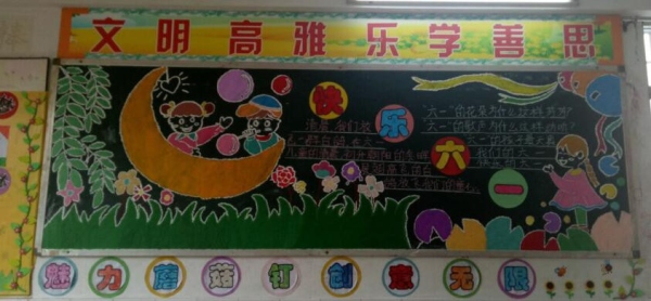 你瞧!這是吉安學(xué)校低年段開展的以“我的節(jié)日我做主”為主題的班級(jí)黑板報(bào)。各班圍繞“六一”的主題,推出了一塊塊主題鮮明、設(shè)計(jì)精美的黑板報(bào)。一塊塊黑板,在老師的指導(dǎo)下,在學(xué)子們的妙筆下,變成了一幅幅優(yōu)美的畫卷。一幅幅栩栩如生的繪畫、一個(gè)個(gè)鮮活的故事、一首首動(dòng)聽的兒童詩歌,展現(xiàn)在師生的面前,為班級(jí)增添了濃濃的節(jié)日氣氛!