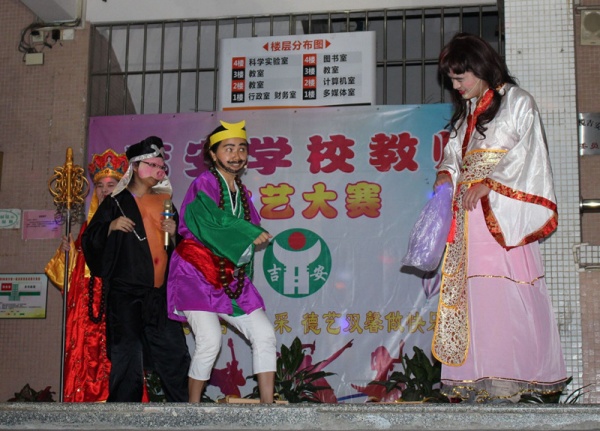 賽前學(xué)校醒獅隊和非洲鼓樂團的老師們分別表演了具有中國元素的舞獅鼓樂和具有非洲文化氣息的非洲鼓兩個節(jié)目,讓觀眾們耳目一新,很有震撼力。接著吉安學(xué)校校長韋志海致詞。他在致詞中說,近年來,吉安學(xué)校在董事會的支持下很重視藝術(shù)工作,積極發(fā)掘教師的特長,開設(shè)了20多個藝術(shù)興趣班。并常態(tài)化的舉辦各種師生文藝展演活動,這對于拓展師生文化視野、弘揚時代精神、提升人生境界、培養(yǎng)健康高雅的審美情趣,促進學(xué)生全面發(fā)展產(chǎn)生了積極的影響,學(xué)校為老師們創(chuàng)造機會,搭建平臺,目的是提升老師們的才華和藝術(shù)素養(yǎng),從而帶動和引領(lǐng)學(xué)生發(fā)揚個性特長,推動學(xué)校特色教育上水平、出成果。希望更多的老師參與比賽活動,展示才藝。