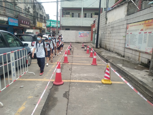 復(fù)學(xué)第1天,嚴(yán)實(shí)的口罩捂住了大家的口鼻,但每一位走入校園的同學(xué)都難掩眉梢間的興奮與喜悅。走過緩沖區(qū)、間隔1米排隊(duì)等候、排隊(duì)測(cè)溫、排隊(duì)回教室,一切都井然有序,截止早上7:50分,全校4至6年級(jí)631名同學(xué)全部安全、順利返回學(xué)校復(fù)課。