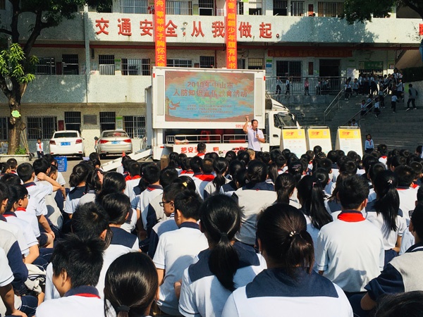 為有效應(yīng)對突發(fā)事件,妥善處置校園安全事故,最大限度地防止或減少意外事故對廣大師生可能造成的危害和損失, 11月4日上午,由中山市住房和城鄉(xiāng)建設(shè)局人防科組織的2019年防空防災(zāi)項目宣教小組到古鎮(zhèn)新徽學(xué)校開展了公益宣教活動。學(xué)生師生共400余人參加了本次活動。