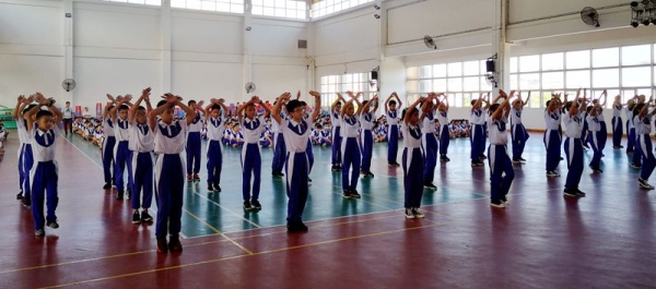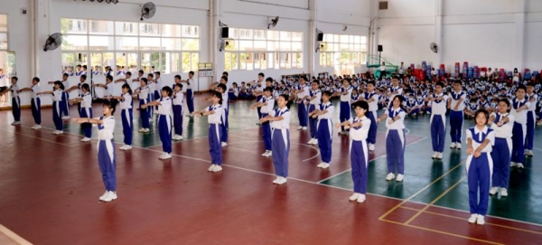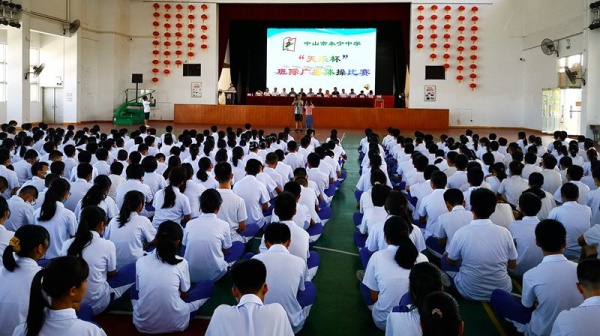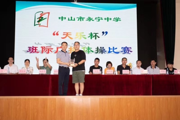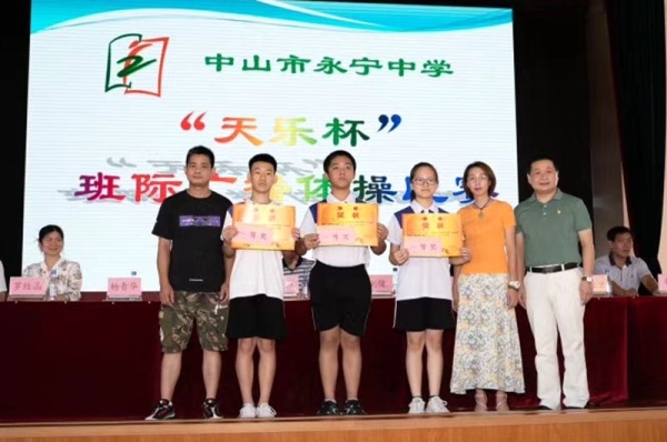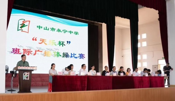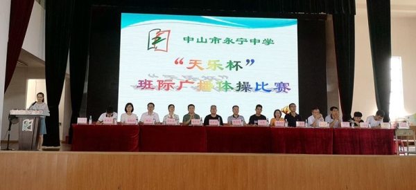 6月11日下午4點,中山市永寧中學在學校體育館隆重舉行“天樂杯”初一年級班際廣播體操比賽。天樂咨詢服務(wù)公司董事長、永寧中學家委會會長梁輝洪先生、天樂咨詢服務(wù)公司財務(wù)總監(jiān)劉健先生、永寧中學家委會副會長陳錦萍女士蒞臨現(xiàn)場,陳清茂校長、楊青華副校長、戴放良主任、王志珍副主任、羅結(jié)晶副主任等學校行政領(lǐng)導(dǎo)出席觀看比賽。鐘敏、朱紅衛(wèi)等老師擔任評委,何健君級長主持。