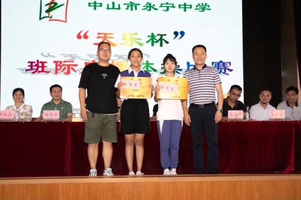 經(jīng)過激烈角逐,各隊名次塵埃落定。王志珍副主任宣布比賽結(jié)果,初一(1)、(7)班獲得特等獎,初一(2)、(4)、(10)獲得一等獎,其他班級獲得二等獎,梁輝洪先生、陳清茂校長、劉健先生、陳錦萍女士等領(lǐng)導(dǎo)嘉賓分別為獲獎班級頒獎狀和獎金。本次比賽獎金由天樂咨詢服務(wù)公司贊助,陳清茂校長代表學校向天樂咨詢服務(wù)公司董事長梁輝洪先生贈送紀念品鳴謝。