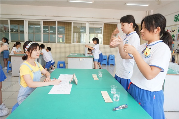 上午8;30開始,五年級全體學生接受了科學實驗操作考核。每個學生必須遵照中山市中小學實驗操作考核要求進行,學生按班為單位在考場門口等候,實驗項目以抽簽的形式決定。進入考場后,每兩個學生一組,同學們對實驗過程中的每一個步驟認真操作,介紹實驗器材,按步驟進行實驗,記錄實驗結果,口述實驗結論,整理實驗器材,以嫻熟的操作、清晰的表達順利完成實驗操作,贏得考核老師的好評。
