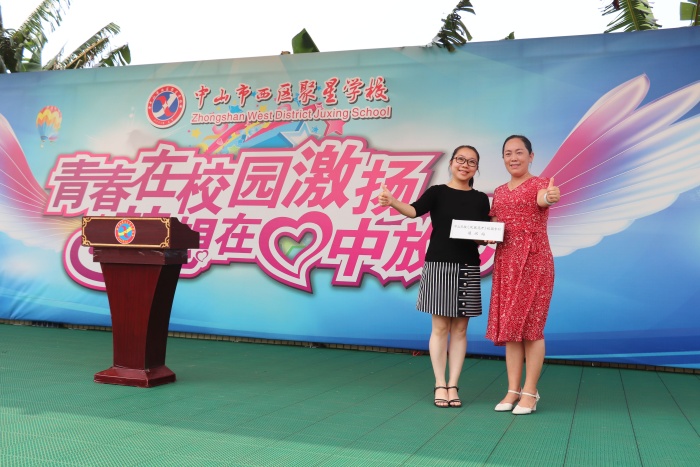 中山報業(yè)傳媒股份有限公司教育工作室總監(jiān)羅展新女士向聚星學(xué)校路海云校長授牌,標(biāo)志著中山日報《鳳凰花開》聚星學(xué)校通訊站正式成立。
