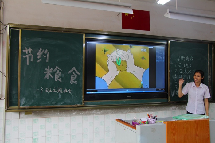 參加完升旗儀式,各班開(kāi)展了節(jié)約糧食的主題班會(huì)。各班主任通過(guò)多媒體屏幕和同學(xué)們朗讀了《憫農(nóng)》這首詩(shī),“春種一粒粟,秋收萬(wàn)顆子。四海無(wú)閑田,農(nóng)夫猶餓死。”這幾個(gè)字格外醒目,教育了同學(xué)們要知道每一粒糧食都來(lái)之不易,提醒同學(xué)們珍惜糧食、減少浪費(fèi)。老師還向同學(xué)們講解了節(jié)約糧食的重要性和浪費(fèi)糧食的危害性。通過(guò)觀看節(jié)約糧食的小短片,每一個(gè)畫面生動(dòng)形象,教育和引導(dǎo)學(xué)生要從自身做起,養(yǎng)成節(jié)約糧食的好習(xí)慣。