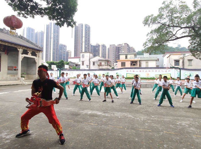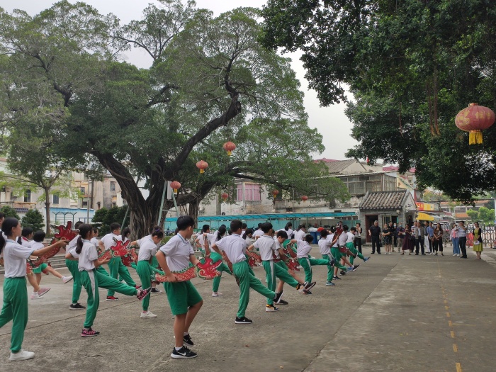 煙洲小學(xué)是醉龍文化項目特色學(xué)校。2020年9月27日,廣東省非物質(zhì)文化遺產(chǎn)代表性項目保護(hù)單位運行評估工作的專家組陳衛(wèi)芬一行在市領(lǐng)導(dǎo)胡頌科、區(qū)領(lǐng)導(dǎo)馮能興等陪同下,到煙洲小學(xué)進(jìn)行廣東省非物質(zhì)文化遺產(chǎn)代表性項目保護(hù)單位運行評估以及觀看國家級非物質(zhì)文化遺產(chǎn)醉龍舞。中山長洲黃氏醉龍舞第六代傳人黃金漸和醉龍舞成員黃敏機(jī)、煙洲小學(xué)副校長楊志堅、美育處主任黃秋玲等、煙洲小學(xué)醉龍舞團(tuán)的學(xué)生們參與此次活動。