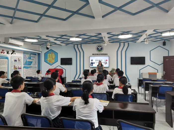 西區(qū)借助禁毒教育基地的優(yōu)勢(shì),組建以思政課教師為講師隊(duì)伍的“禁毒第一課”,以班級(jí)為單位進(jìn)行禁毒宣講和警示教育,內(nèi)容更具體、指向更明確、效果更精準(zhǔn)。讓學(xué)生們真正感受到了毒品的危害,認(rèn)識(shí)到毒品既害人又害己,提高了他們抵御新型毒品侵害的意識(shí)和能力,進(jìn)一步增強(qiáng)了禁毒意識(shí)。下一步西區(qū)街道教育和體育事務(wù)中心、西區(qū)禁毒辦、西區(qū)中學(xué)將繼續(xù)發(fā)揮禁毒教育基地的作用,力爭(zhēng)實(shí)現(xiàn)禁毒教育的全區(qū)覆蓋。
