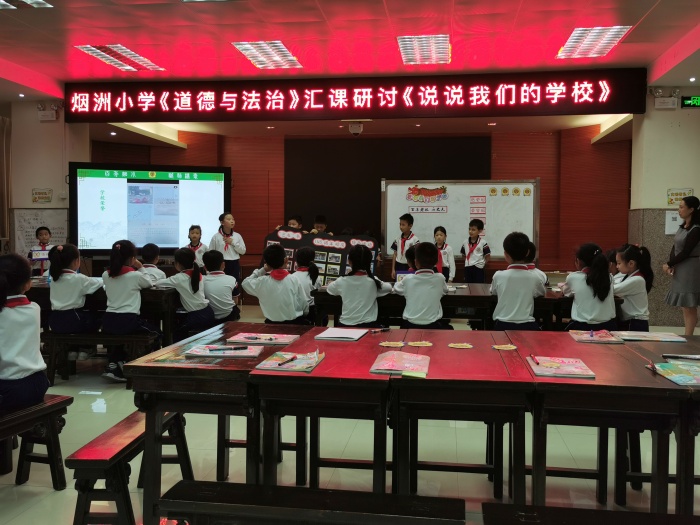 11月18日下午2:30,煙洲小學(xué)周泉老師在一樓多功能室展示了一節(jié)繪聲繪色的道德與法治課——《說說我們的學(xué)?!?,來自西區(qū)各所學(xué)校的道德與法治老師對本節(jié)課進(jìn)行了學(xué)習(xí)和研討。