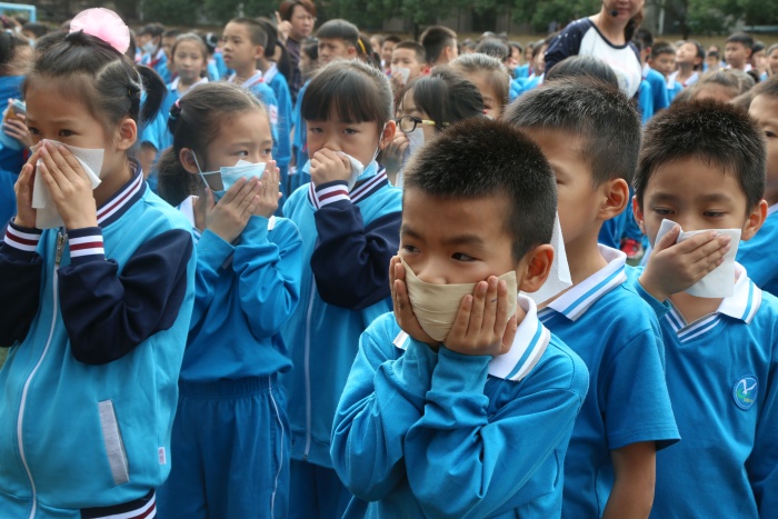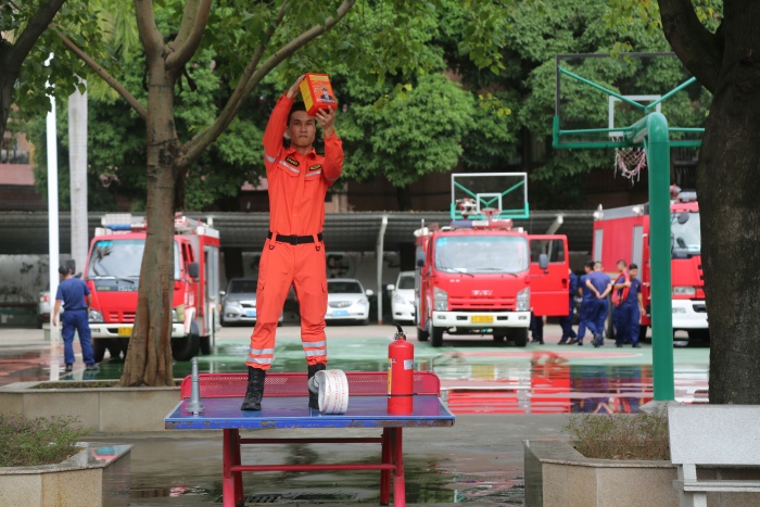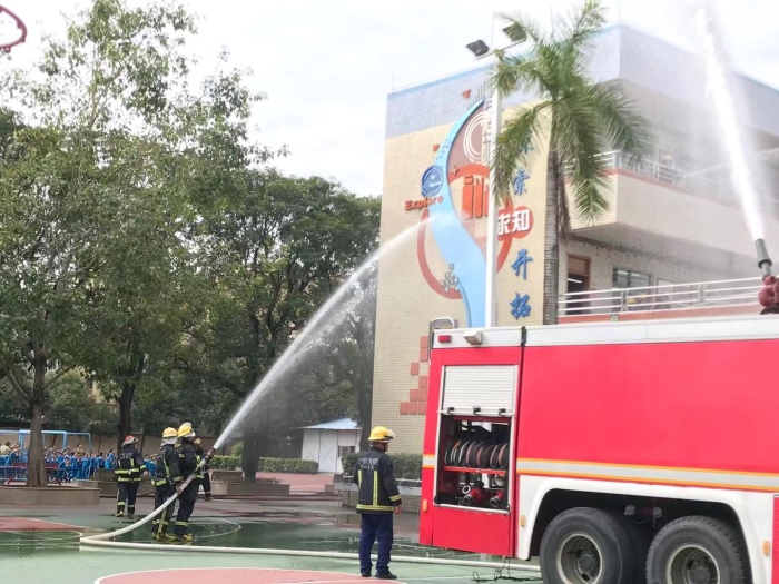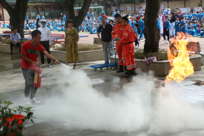 疏散演練開始,急促的警報聲響徹校園,各樓層疏散老師立即到崗,上課教師第一時間組織好學生,同學們用濕毛巾或手捂住口鼻,彎腰有序地從指定樓道迅速撤離,全校九百余名師生在不到兩分鐘的時間里迅速地撤離到安全地帶。然后學生觀看了模擬火災現(xiàn)場消防員是如何把火撲滅的。演練結束后,西區(qū)消防中隊的牛警官就本次消防應急疏散演練活動做了總結講話,他希望全體學生要加強學習安全自護知識,不斷提高自救、自護能力,遇到突發(fā)事件能保持冷靜頭腦,沉著、有序、快速地撤離到安全地帶。消防隊的指揮員還給全體師生講解滅火器的使用方法,并現(xiàn)場演示如何滅火;給全體師生講解火災現(xiàn)場防毒面具及消防水帶的正確使用。師生們個個聽得認真,更是興致高昂地舉手要現(xiàn)學現(xiàn)用,都想操作一下滅火器的使用。