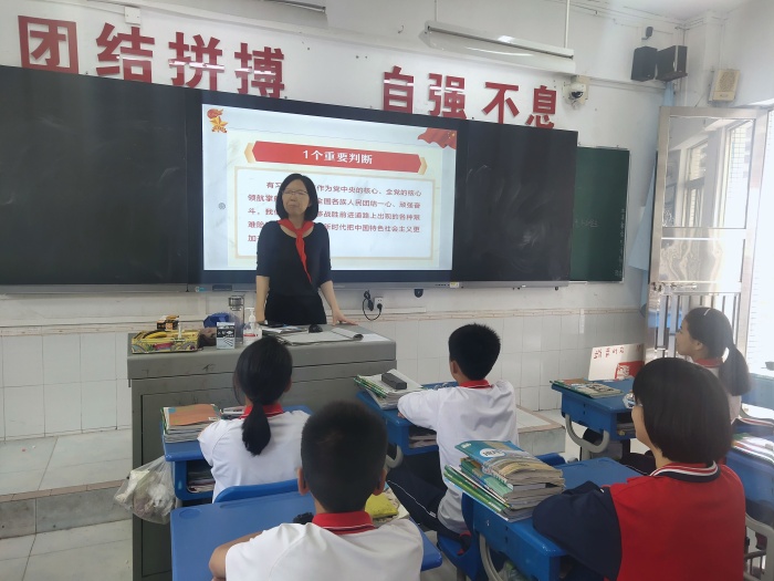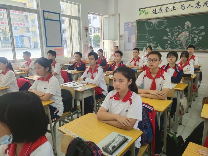 初二年級(jí)以中隊(duì)為單位開展學(xué)習(xí),中隊(duì)邀請(qǐng)資深黨員教師來講解黨的十九屆五中全會(huì)精神,黨員教師從“1個(gè)重要判斷、決勝全面建成小康社會(huì)取得的10方面決定性成就、中國(guó)發(fā)展環(huán)境面臨的深刻復(fù)雜變化”等方面,結(jié)合自身閱歷,聯(lián)系少先隊(duì)員現(xiàn)在的學(xué)習(xí)情況、行為習(xí)慣等,開展細(xì)致的講解。