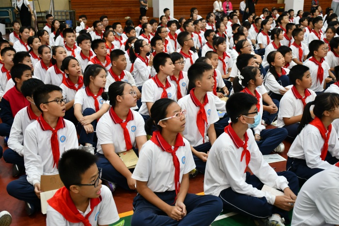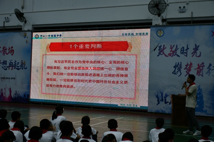 中山一中西區(qū)中學(xué)的少先隊(duì)員們將從小樹立遠(yuǎn)大理想,緊跟時(shí)代步伐,學(xué)習(xí)五中全會(huì)精神,堅(jiān)定跟黨走的信念,用不懈的奮斗書寫紅領(lǐng)巾新篇章。