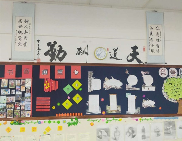 新學(xué)期伊始,該校班主任和全體學(xué)生對(duì)教室班級(jí)文化進(jìn)行精心設(shè)計(jì)與文化布置。該校各班制定了富有特色的班風(fēng)、班訓(xùn)、班主任寄語等,根據(jù)實(shí)際還增設(shè)了一些有特色的欄目。比如,公告欄、時(shí)事欄、誦讀欄、手抄報(bào)等。把“美”的教育滲透在班級(jí)文化的各個(gè)方面:在墻面上還設(shè)置了“小小書法家”“小小畫家”、“每周一星”“我真棒”、“學(xué)習(xí)園地”等區(qū)域,做到了讓“每一堵墻”成為“無聲的導(dǎo)師”。通過一輪的評(píng)比,每個(gè)年級(jí)都評(píng)出了一個(gè)一等獎(jiǎng)、兩個(gè)二等獎(jiǎng)和若干個(gè)三等獎(jiǎng)。最后把文化凸顯的三個(gè)優(yōu)秀班級(jí)參加區(qū)級(jí)特色班級(jí)評(píng)選候選:分別是六(4)班、六(2)班和二(1)班。