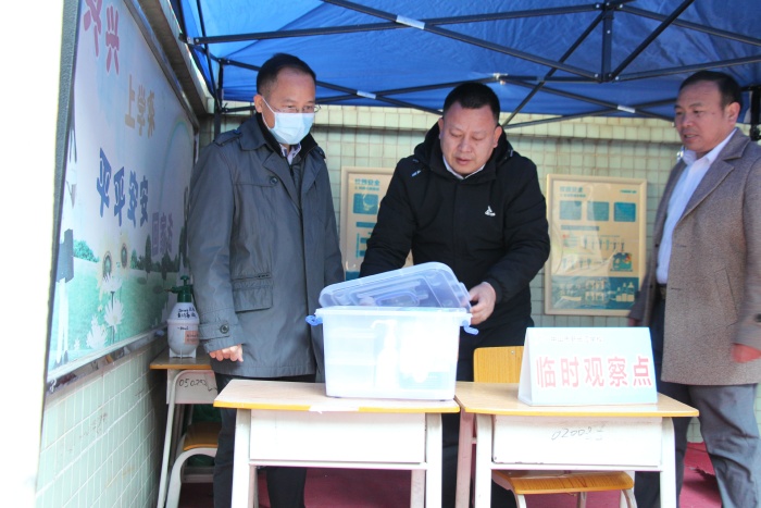 蘇文森先來到保安室,實(shí)地檢查安保措施落實(shí)情況,對值班保安提出了具體要求,希望保安同志們能堅(jiān)守崗位,不能輕易放進(jìn)無關(guān)人員,特殊情況進(jìn)校者必須消毒測溫、掃健康碼,要讓全校師生的安全感更有保障。在學(xué)校臨時(shí)觀測點(diǎn),蘇文森表示,檢測點(diǎn)防疫物資完備,衛(wèi)生清潔,布置科學(xué)合理,一定要按到防疫要求做好細(xì)心觀測。前往校醫(yī)室,蘇文森詳細(xì)詢問了防疫物資儲備情況以及學(xué)校師生近期是否存在發(fā)熱情況,蘇文森強(qiáng)調(diào),防疫工作依然十分嚴(yán)峻,不能放松警惕,一定要嚴(yán)防死守,措施到位,積極預(yù)防。來到學(xué)校食堂,蘇文森對食品安全臺賬進(jìn)行詳細(xì)檢查,并查看了食堂衛(wèi)生安全。就食品安全問題向?qū)W校食堂工作人員進(jìn)行宣傳,他要求一定不能購置冷凍食材,嚴(yán)格防范新冠病毒,要切實(shí)保障食品安全。在巡視教師辦公室時(shí),蘇文森對教師進(jìn)行親切的問候并在學(xué)校三樓黨員活動室召開教師座談會,認(rèn)真傾聽了教師的工作感受和對學(xué)校的意見建議,教師們暢所欲言。屋外寒風(fēng)習(xí)習(xí),但是蘇文森的噓寒問暖令室內(nèi)暖意融融。