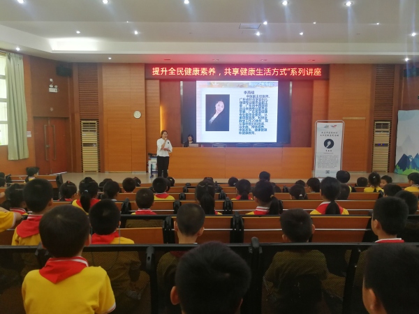 講座中,李燕明醫(yī)生向孩子們提出“什么是健康?人能活多少歲?”等問(wèn)題,孩子們也積極舉手發(fā)言進(jìn)行互動(dòng)。接著李醫(yī)生闡述了健康包括身體健康和心理健康,講述了中醫(yī)養(yǎng)生的方法,并從順應(yīng)自然、起居有常、食欲有節(jié)、運(yùn)動(dòng)、心理養(yǎng)生五方面進(jìn)行詳細(xì)的說(shuō)明,教會(huì)學(xué)生做健康操,讓孩子學(xué)會(huì)平衡自己的膳食,保證睡眠時(shí)間,適量運(yùn)動(dòng)來(lái)提升自己的健康生活。最后,主持人王迪對(duì)本次活動(dòng)進(jìn)行了總結(jié),并為孩子們送上了小禮品。