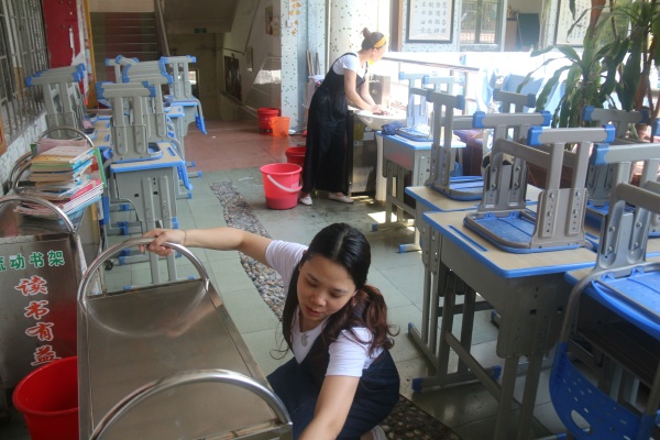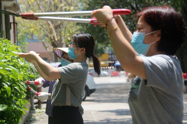 會后,黨支部成立了三支創(chuàng)文突擊隊小分組。第一小組負(fù)責(zé)學(xué)校衛(wèi)生清理。大家興沖沖拿起掃把,清理學(xué)校的每一個角落,特別是學(xué)?!八澜恰眳^(qū)域,為學(xué)生返校創(chuàng)建整潔的校園環(huán)境。第二小組負(fù)責(zé)“牛皮癬”清除。校園代表著一個學(xué)校的精神面貌,“校園牛皮癬”不能留??矗蠹艺谂Φ冂P除“牛皮癬”呢! 第三小組負(fù)責(zé)校園的美化綠化工作。話不多說,同志們趕緊拿上修枝剪,把花草修剪得更加整齊、美觀!