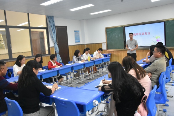 該活動(dòng)由付碧玉老師主持,首先由郭梓健老師作為教師代表進(jìn)行發(fā)言,郭老師從融入學(xué)校環(huán)境,結(jié)合自身職業(yè)評(píng)價(jià)定位,分享了入職五年以來(lái)個(gè)人的成長(zhǎng)收獲。他表示要多向同行、多向?qū)<医涣鲗W(xué)習(xí),多參加學(xué)校各項(xiàng)活動(dòng),要認(rèn)真把當(dāng)前事情做好做細(xì)并且做長(zhǎng)遠(yuǎn)。其次是教師代表黃海韻老師發(fā)言,她主要結(jié)合自身這十年里的工作經(jīng)驗(yàn)與成長(zhǎng),從立志 學(xué)習(xí) 機(jī)遇 實(shí)踐 總結(jié) 五方面談自己的收獲,她提到,要懂得抓住機(jī)遇,創(chuàng)造機(jī)會(huì)鍛煉自己,要有終身學(xué)習(xí)的精神。