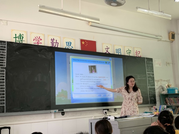 首先,由西區(qū)中心小學(xué)的蔡林豆老師執(zhí)教一節(jié)五年級的閱讀課——Unit 6 Shopping,蔡老師教態(tài)自然大方,表情和藹,語氣可親,積極主動與學(xué)生互動,課堂氣氛活躍。