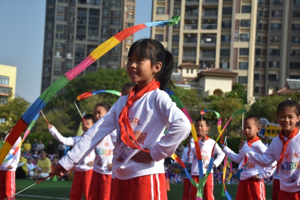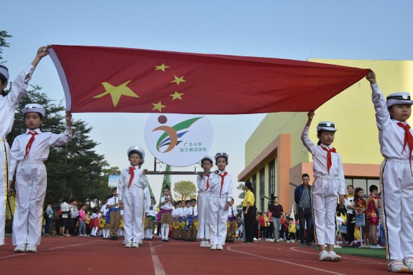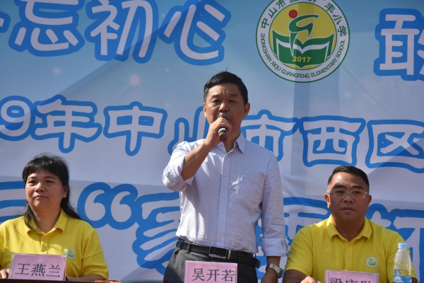 在莊嚴的升旗儀式之后,梁慶助校長向全體師生作運動會開幕詞,接著是裁判員和運動員代表宣誓。最后由中山市西區(qū)教育事務指導中心主任吳開若宣布本次校運會開幕。