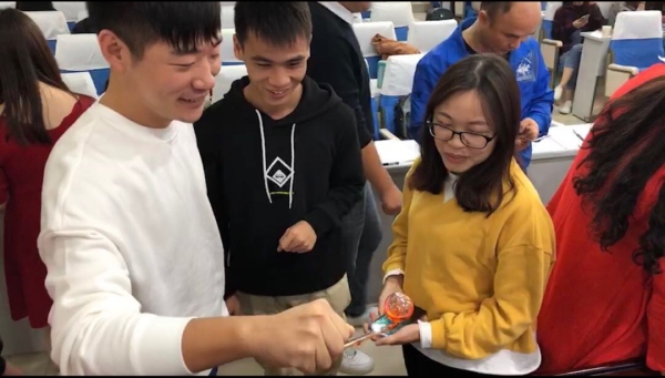 次日,湖南師范大學(xué)物理與電子科學(xué)學(xué)院熊舉峰教授為他們帶來題為《趣味物理實驗與初中物理教學(xué)》的講座。熊教授以生活實例說明趣味物理實驗讓他們學(xué)習(xí)到,指出趣味引發(fā)學(xué)習(xí)興趣、興趣激發(fā)學(xué)習(xí)動機(jī)、動機(jī)引領(lǐng)學(xué)生探究。熊教師還為他們帶來沸騰球、飲水鳥、火龍卷、聽話的罐子、物態(tài)變化等有趣的物理實驗,讓他們體會到課堂上實驗一定要親自體驗才會帶來巨大的震撼力。