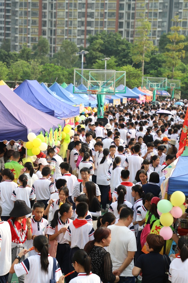慶典結(jié)束后,人群涌到了籃球場,球場上各色帳篷鮮艷奪目,紅旗迎風(fēng)飄揚,美食琳瑯滿目,美食嘉年華也拉開了序幕,現(xiàn)場人頭攢動,紛紛被各班盡心準備的美食吸引了,美食品種豐富多樣,地方特色小吃、奶茶飲品、壽司披薩……讓人垂涎欲滴,小志愿者們也在積極推銷各班的美食。為了吸引更多的顧客,人人各出奇招,小游戲互動,人物扮演,派送傳單……引得大家紛紛駐足,攤位人氣鼎沸。與此同時,學(xué)校成立的評委會,也認真對各班的小鋪進行評比,對34個各具特色的小鋪進行打分,評審出最美小鋪。師生家長們在歡聲笑語中享受著美食帶來的美好時光。