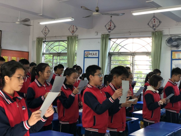9:05-9:15憲法晨讀?!氨緫椃ㄒ苑傻男问酱_認(rèn)了中國(guó)各族人民奮斗的成果,規(guī)定了國(guó)家的根本制度和根本任務(wù),是國(guó)家的根本法,具有最高的法律效力。”同學(xué)們精神飽滿,情緒激昂,大聲跟隨誦讀《中華人民共和國(guó)憲法》,這鏗鏘有力的聲音回蕩在校園里,莊嚴(yán)而又神圣。