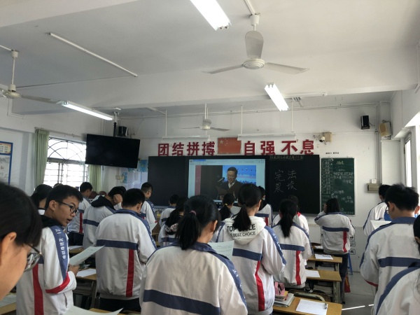 12月4日是中華人民共和國(guó)憲法日。為了增強(qiáng)全校師生的憲法意識(shí),弘揚(yáng)憲法精神,加強(qiáng)憲法實(shí)施,全面推進(jìn)依法治國(guó),開展好憲法宣傳教育活動(dòng),12月4日上午,中山一中西區(qū)中學(xué)組織學(xué)生通過青少年普法網(wǎng),觀看教育部在北京全國(guó)青少年學(xué)生法治教育實(shí)踐示范基地舉辦的2019年“國(guó)家憲法日”憲法晨讀活動(dòng):