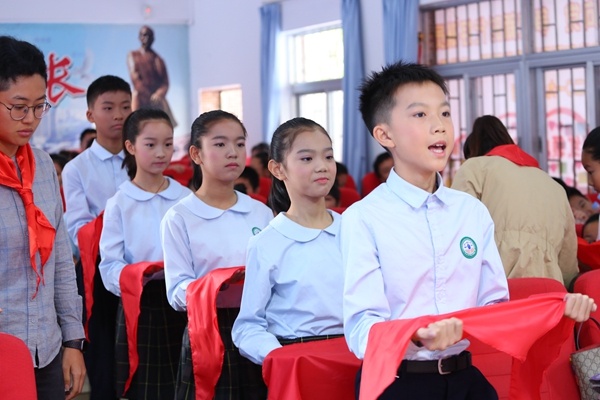 為了培養(yǎng)少先隊(duì)員的民族自豪感和責(zé)任擔(dān)當(dāng)意識(shí),增強(qiáng)他們對(duì)中國少年先鋒隊(duì)光榮歷程的了解,西區(qū)鐵城小學(xué)在活動(dòng)前已舉行了校內(nèi)少先隊(duì)隊(duì)干技能比賽。六(3)中隊(duì)在校內(nèi)比賽中脫穎而出,代表鐵城小學(xué)與全區(qū)的各校中隊(duì)代表角逐區(qū)賽一二三等獎(jiǎng)。