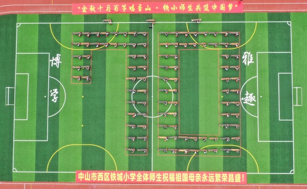 據(jù)悉,此次活動(dòng)以“金秋十月百箏鳴香山·鐵小師生共筑中國(guó)夢(mèng)”為主題,于10月15日在學(xué)校操場(chǎng)舉行。百架古箏的“70”造型,整齊的著裝,悠揚(yáng)的古箏,百人齊聚于操場(chǎng)中央,撥弦彈奏,吟誦嘆詠,整個(gè)校園都流淌著傳統(tǒng)文化的音符,場(chǎng)面蔚然壯觀。蒙學(xué)經(jīng)典《三字經(jīng)》,古典詩(shī)詞《憫農(nóng)》和意蘊(yùn)悠遠(yuǎn)的《靜夜思》,鐵小學(xué)子們將中華傳統(tǒng)經(jīng)典文化以獨(dú)特的藝術(shù)形式一一呈現(xiàn),禮獻(xiàn)祖國(guó),開(kāi)創(chuàng)了中山市中小學(xué)生百人古箏合奏之歷史。