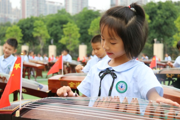歲月不居,時(shí)節(jié)如流;箏音環(huán)繞,禮獻(xiàn)祖國(guó)。2019年適逢新中國(guó)成立70周年,秉承著“弘揚(yáng)傳統(tǒng)文化,振興民族精神”的理念,中山市西區(qū)鐵城小學(xué)學(xué)生在藝術(shù)指導(dǎo)顏萍老師的指揮下,以傳統(tǒng)樂(lè)器古箏和古典詩(shī)詞為依托,奏響了中華人民共和國(guó)成立七十周年的樂(lè)章。