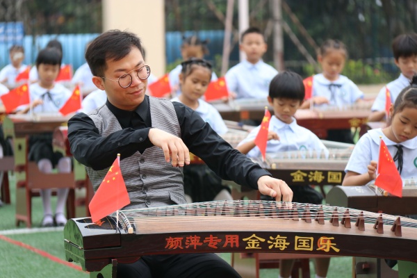 據(jù)學(xué)校美育工作負(fù)責(zé)人劉敏輝副主任介紹,今天表演的孩子都是一年級(jí)小學(xué)生,他們從開(kāi)學(xué)至今學(xué)習(xí)古箏剛好一個(gè)月時(shí)間。“我們?cè)谝荒昙?jí)7個(gè)班級(jí)中開(kāi)展了藝術(shù)進(jìn)課堂活動(dòng),其中有三個(gè)班級(jí)是教學(xué)古箏,一個(gè)班級(jí)是教學(xué)葫蘆絲。孩子們每周參加三次訓(xùn)練,通過(guò)十余次課的學(xué)習(xí),對(duì)古箏產(chǎn)生了一定的興趣,也能在老師的指導(dǎo)下完成這次表演。”劉敏輝說(shuō),看到孩子們?cè)谶@么短的時(shí)間里能有如此好的表現(xiàn),覺(jué)得很欣慰?!斑@樣一場(chǎng)活動(dòng)看起來(lái)好像并不難,但其實(shí)我們音樂(lè)組團(tuán)隊(duì)在背后付出了很多的努力。不過(guò),看到孩子們的進(jìn)步和成長(zhǎng),我覺(jué)得再多的辛苦都值得?!?/p>