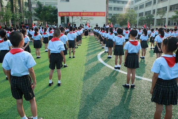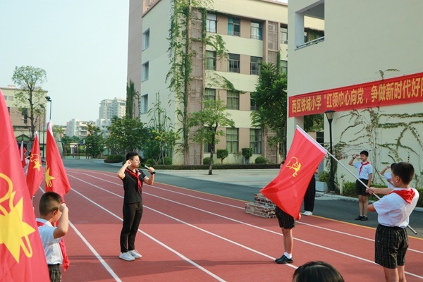 伴隨著祖國前進(jìn)的步伐,中國少年先鋒隊(duì)走過了70年光輝歷程。在中國少年先鋒隊(duì)建隊(duì)日來臨之際,西區(qū)鐵城小學(xué)舉行了“紅領(lǐng)巾心向黨,爭做新時(shí)代好隊(duì)員”主題隊(duì)日活動(dòng)。
