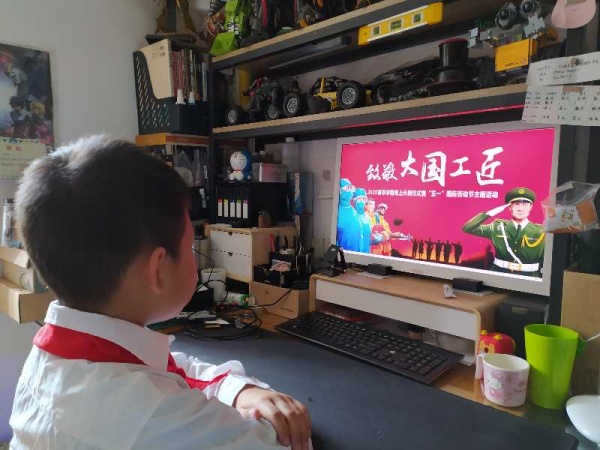 據(jù)悉,本次線上活動分為兩大部分:“致敬,大國工匠”線上升旗儀式和五一勞動節(jié)主題的班會課活動。少先隊(duì)員們是祖國的未來,祖國的希望。同學(xué)們穿戴校服,精神抖擻地進(jìn)行線上升國旗儀式。接著,班主任老師給同學(xué)們講解了“工匠”一詞的釋意。他們所代表的精益求精、推陳出新、毫厘之間追尋造物極致的精神卻永不過時。在科技領(lǐng)域,工匠精神顯得尤為突出和重要??萍寂d,則民族興;科技強(qiáng),則國家強(qiáng)。近年來,我國在科技創(chuàng)新領(lǐng)域取得了舉世矚目的發(fā)展成果。班主任老師在和同學(xué)課堂互動的過程中,看到同學(xué)們紛紛表示要發(fā)揚(yáng)這種工匠精神,做社會主義接班人。
