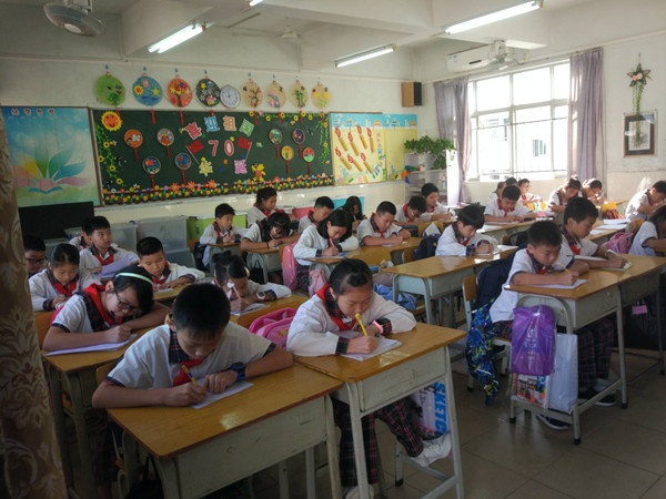 據(jù)悉,本次比賽要求在規(guī)定的30分鐘內(nèi)用書(shū)寫(xiě)體正確、規(guī)范書(shū)寫(xiě)現(xiàn)場(chǎng)規(guī)定的內(nèi)容。三年級(jí)抄寫(xiě)26個(gè)字母大小寫(xiě)、10個(gè)單詞及5個(gè)句子。四五六年級(jí)抄寫(xiě)4個(gè)句子和一篇英語(yǔ)小短文。不同年級(jí)書(shū)寫(xiě)格式不同:三四年級(jí)要求在英語(yǔ)四線三格線上寫(xiě),而五六年級(jí)則在單行線上書(shū)寫(xiě)。