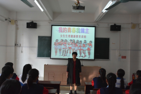 為針對學(xué)校初中女生中出現(xiàn)的各種隱形的違紀(jì)現(xiàn)象,進一步加強初中女生的管理和關(guān)愛工作,增強女生學(xué)會愛護自己、保護自己的觀念,幫助女生掌握必要的青春期保健知識,順利度過人生的花季,積極為初中女生創(chuàng)設(shè)健康成長營造更加和諧溫馨的校園環(huán)境。2019年11月13日上午, 德育處、學(xué)校共青團團委聯(lián)合籌備召開了“我的青春、我做主”為主題的全體初中女生生理心理健康專題講座。