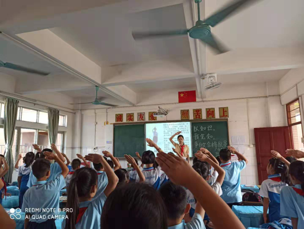少先隊(duì)員們仔細(xì)聆聽輔導(dǎo)員們的教導(dǎo),糾正自身還不規(guī)范的小細(xì)節(jié),紛紛跟著輔導(dǎo)員系上最規(guī)范的紅領(lǐng)巾,敬最標(biāo)準(zhǔn)的隊(duì)禮,嚴(yán)格按照要求舉起右拳于耳側(cè)用最洪亮的聲音學(xué)著宣誓、呼號(hào)等。未入隊(duì)的小同學(xué)們帶著滿滿的好奇跟著老師認(rèn)真學(xué)著少先隊(duì)基本知識(shí),爭取早日戴上鮮艷的紅領(lǐng)巾入隊(duì),成為一名真正的少先隊(duì)員。