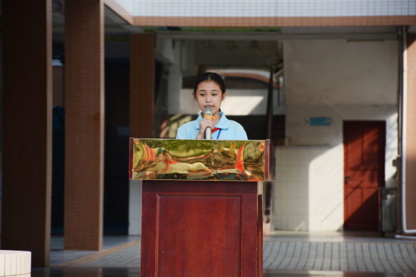 優(yōu)秀少先隊員代表張馨予同學發(fā)表了牢記習爺爺教導為主題的講話,她希望全體少先隊員珍惜今天來之不易的幸福生活,懷著一顆感恩的心,規(guī)范自己的言行舉止,努力學習,將來做對國家,對人民,對社會有用的人。