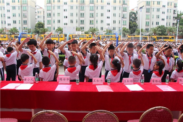 本次活動(dòng)分為兩個(gè)程序,首先是在新長江學(xué)校操場舉行表彰大會(huì)?;顒?dòng)由辦公室主任王中慧主持,該校行政領(lǐng)導(dǎo)、少先隊(duì)大隊(duì)輔導(dǎo)員、共青團(tuán)委書記在主席臺(tái)上就坐。