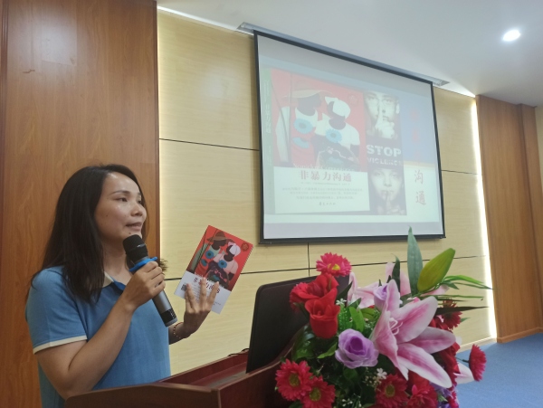 丁秀梅老師通過“釘子故事”闡述話語帶來的傷害,運用生動的案例和對比練習,讓老師們明晰非暴力溝通的四要素,即觀察、表達感受、體會自身需求、區(qū)分請求與命令,強調(diào)“與他人溝通時,不要輕易妄下評論”?!吧鷼狻本腿缤粋€附身符一樣跟隨人們左右,特別是面對正值青春期的孩子,一不留神兒就起火,有時會隱忍,有時隔一段時間后就爆炸一回……自己都不忍面對這樣的自己。”怎樣可以讓自己不生氣呢?肖志華老師向老師們推薦“憤怒之時后退兩步、一日三省做好自我反思、規(guī)律練習”等方法,表示時刻保持快樂是抑制生氣最好的方式。黃清老師以曾國藩先生小時候的“審雞蛋案”導入,激發(fā)老師們的閱讀興趣,向老師們分享交友的標準。