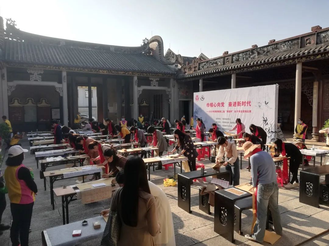 為學(xué)習(xí)貫徹黨的十九屆五中全會精神,傳承和弘揚中華優(yōu)秀傳統(tǒng)文化,豐富婦女精神文化生活,12月27日上午,“巾幗心向黨,奮進新時代——南朗鎮(zhèn)第二屆‘博愛杯’女子書法現(xiàn)場比賽”在南朗鎮(zhèn)家訓(xùn)傳承基地(茶東陳氏宗祠)舉行。
