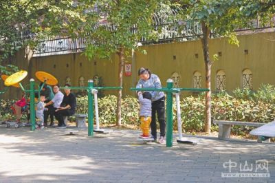 15日上午,村民在三鄉(xiāng)鎮(zhèn)橋頭村的健身場玩耍。本報記者 王云 攝