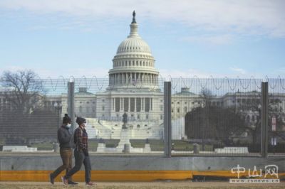 1月24日,在美國首都華盛頓,人們戴著口罩從國會大廈附近經(jīng)過。新華社 發(fā)