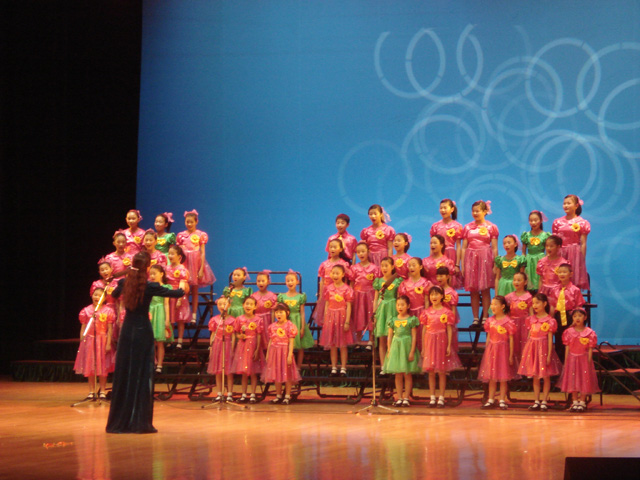 ??? 合唱隊(duì)終于成立了,接下來要做的就是怎樣進(jìn)行訓(xùn)練的問題,剛接觸合唱訓(xùn)練,很多孩子都還不明所以。第一次的訓(xùn)練課,老師請同學(xué)們唱剛學(xué)會的《茉莉花》,結(jié)果,聽到的并不是甜美、柔和、有穿透力的清亮童聲,而是稀里嘩啦的一堆噪音,孩子們覺得唱的大聲就是好聽,因而爭先恐后地大聲喊唱。有了這次的訓(xùn)練經(jīng)歷,負(fù)責(zé)訓(xùn)練的老師轉(zhuǎn)變了排練的思路和方法,要讓孩子們唱出美妙的聲音,樹立他們正確的聲音概念才是最主要的,于是,老師在每一次的排練之前都用20分鐘讓孩子們欣賞一些世界優(yōu)秀的童聲合唱團(tuán)演唱的作品,讓他們知道并不是唱的大聲就是好的,經(jīng)過一段時(shí)間的熏陶,聰明的學(xué)生們對聲音的概念有了質(zhì)的改變,合唱隊(duì)進(jìn)入了正式的全面訓(xùn)練階段。