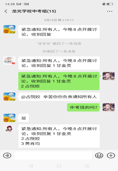 2020年二月伊始,在知道無法正常返校,接到上級(jí)部門“停課不停學(xué)”的通知開始,我校積極響應(yīng)號(hào)召,特別是初三畢業(yè)班,從2月10日就開始組建畢業(yè)班教師云會(huì)議團(tuán)隊(duì)。期間,不停的召開中考備考會(huì),商討如何有效地利用在線教育平臺(tái),落實(shí)抓牢學(xué)生的學(xué)習(xí)等討論會(huì)議。我校領(lǐng)導(dǎo)及全體畢業(yè)班老師利用視頻開展了百日誓師會(huì)議,制定了有效、可操作的《龍光學(xué)校疫情期間“云”學(xué)習(xí)工作實(shí)施方案》《全體教師“云”教學(xué)職責(zé)書》《初三線上教學(xué)作息時(shí)間表》《致全體老師和家長(zhǎng)的信》等規(guī)章制度,為初三畢業(yè)班網(wǎng)絡(luò)線上教學(xué)打下了堅(jiān)實(shí)的基礎(chǔ)。 會(huì)議過后,所有初三畢業(yè)班的老師積極投身在教學(xué)活動(dòng)中,各科組組織云教研,為網(wǎng)絡(luò)線上教學(xué)做好準(zhǔn)備。同時(shí),所有班主任積極與家長(zhǎng)聯(lián)系,組建班級(jí)釘釘群,將班級(jí)群分組等一系列準(zhǔn)備工作。當(dāng)然,在這個(gè)過程中,我校初三畢業(yè)班老師也是積極地學(xué)習(xí)、整改,爭(zhēng)取為網(wǎng)絡(luò)線上教學(xué)開一個(gè)好頭。 我校初三的莘莘學(xué)子,在疫情的影響下,雖無法正常返校,但是在家的時(shí)候,也非常認(rèn)真努力的學(xué)習(xí)。他們?cè)谑謾C(jī)或者電腦前面,一直秉承初心,努力進(jìn)取??粗麄?cè)谧约旱男〗M里積極熱烈的進(jìn)行討論,看著他們溫馨充滿愛的作業(yè),看著家長(zhǎng)發(fā)來的他們認(rèn)真學(xué)習(xí)的照片,作為老師的我們由衷的感到欣慰。 備戰(zhàn)中考,不負(fù)韶華,龍光的老師及學(xué)子們?cè)趭^力踐行著。學(xué)校篇