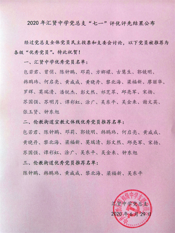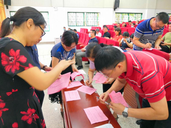大會的第一部分,由何啟亮委員宣讀倫教街道黨工委及匯賢中學(xué)黨總支決定對優(yōu)秀黨員進(jìn)行表彰的通知,并公布了優(yōu)秀黨員的評選條件和要求。接著各黨小組按組織要求進(jìn)行了民主選舉。