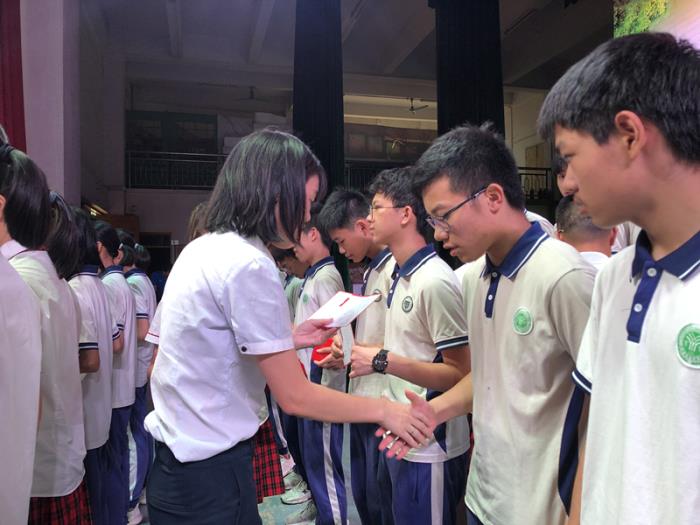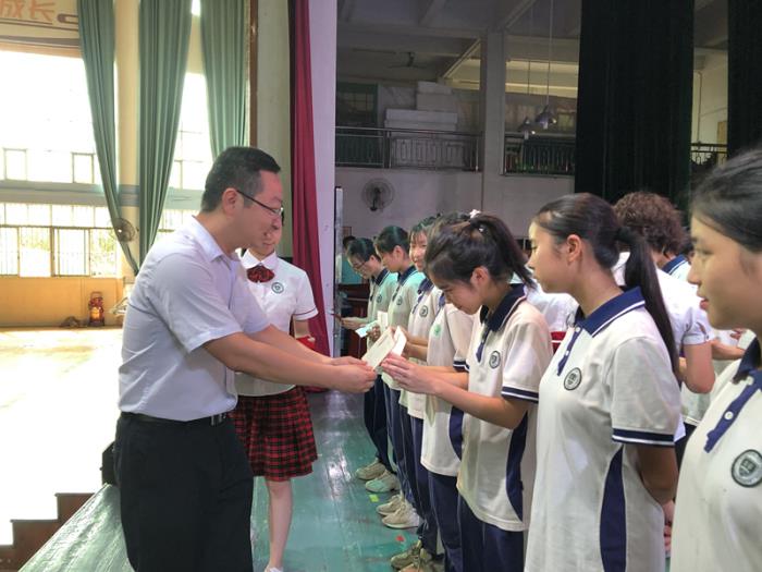接著, 冉思柱老師代表全體九年級老師在離別之際送上了真誠的祝福。他飽含深情地回憶起跟同學(xué)們在一起的美好時光,并希望大家:讓育賢精神心中永存,用一顆真誠的心向世界播撒溫暖和陽光,堅強勇敢,坦然無愧地看待自己,珍愛平凡而充實的人生!不管走到哪里,都要與好書為友,與摯友相伴,無愧于自己、無愧于生活、無愧于這個激情四射的時代!