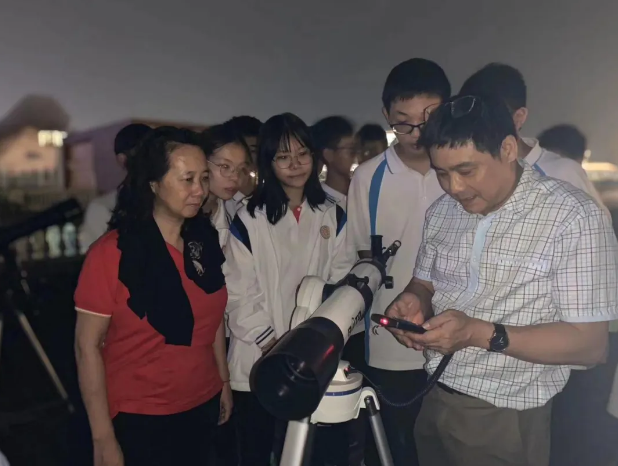 蒼茫銀河,有跡可循。那些在天幕劃過的流星,無盡的黑洞,光年之外的世界,無窮不有,我們仰望星空,懷揣著赤誠,去追逐希翼的曙光。我校的天文社團是以學(xué)生的各種天文興趣活動為主要內(nèi)容的社團。我社團主要通過模擬星空,模擬演示天文現(xiàn)象,讓同學(xué)更直觀的認識宇宙,認識地球的自轉(zhuǎn)和公轉(zhuǎn)、月相變化、四季變化、天體坐標、亮度以及認識一些著名的深空天體。它對培養(yǎng)學(xué)生學(xué)科學(xué)的興趣及創(chuàng)新能力有著極大的作用。 除了在校進行對天文知識的學(xué)習外,還積極與他校進行友好交流。