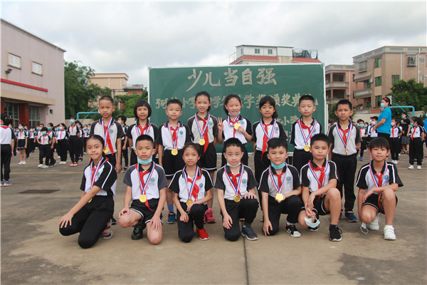 風(fēng)雨過后,一片陽光。受疫情影響,弼教小學(xué)原定在開學(xué)初頒發(fā)的“成學(xué)獎”,此時才能夠集中學(xué)生進(jìn)行。