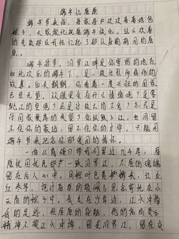 這次端午節(jié)主題活動(dòng)內(nèi)容有:1、“粽子情,我們傳”。要求初一級(jí)學(xué)生在2020年6月25-27(端午假期)在家里包一次粽子、制作香囊、掛艾草。2、“傳經(jīng)典,誦祖國(guó)”。要求初二級(jí)學(xué)生以端午節(jié)為主題,朗誦一首詩(shī)歌(視頻拍攝)、寫(xiě)一篇抒情文章、書(shū)寫(xiě)一幅對(duì)聯(lián)。初一、初二級(jí)各班都積極開(kāi)展了“端午主題”活動(dòng),讓學(xué)生感悟傳統(tǒng)文化的魅力,接受中華悠久文明的洗禮和傳統(tǒng)美德的熏陶,增強(qiáng)民族自豪感,用中華傳統(tǒng)節(jié)日引領(lǐng)同學(xué)們?cè)娨獬砷L(zhǎng)。