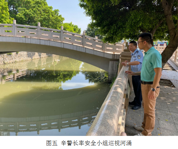 會后,辛警長與劉廣平校長、莫建山主任率領(lǐng)安全小組檢查了校園周邊的多家商店,檢查商品的來源和質(zhì)量,尤其是食品和玩具。安全小組巡查了周邊的河涌河兩岸的防溺水安全防護工作,東升河兩岸均布置了顯眼的警示牌,提醒附近居民不能游泳玩水。