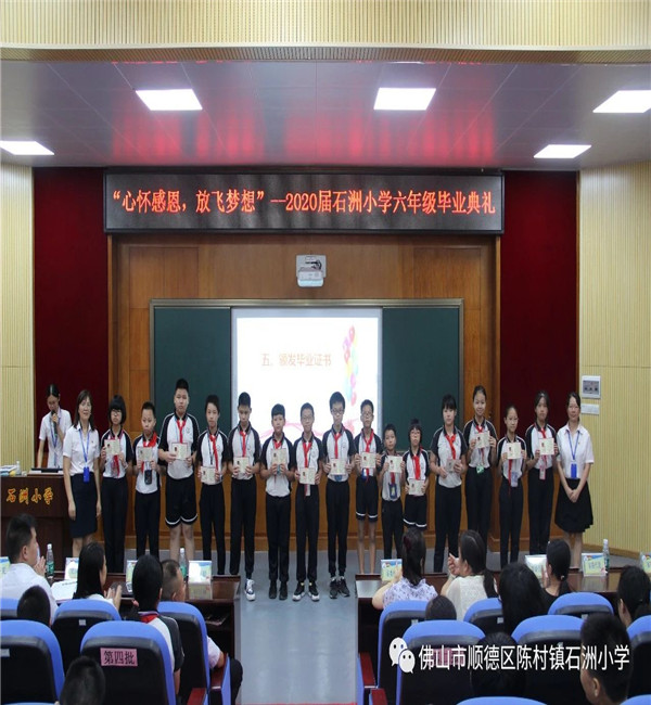 “小荷才露尖尖角,早有蜻蜓立上頭”,陽光少年們接過師長為他們頒發(fā)的畢業(yè)證書,在“感恩的心”歌聲中,銘記石小精神,揚帆啟航,展現(xiàn)石洲小學陽光學子積極自信的風采,去開創(chuàng)無限精彩的未來!